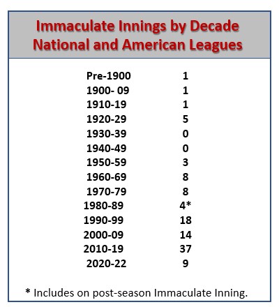 As always, with Baseball Roundtable, one things leads to another. So, let’s take a look at some Immaculate Innings tidbits.
