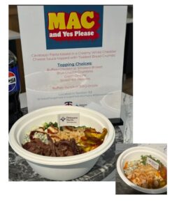 “Mac and Yes Please” takes Macaroni and Cheese from the comfort-food category to gourmet ballpark fare. Bob I both ranked this as our number-one new offering – and you can build it to fit your own taste.  You start with a generous helping of Cavatappi pasta tossed in creamy white cheddar cheese sauce and toasted breadcrumbs. Then you choose the toppings from a list that includes:  Buffalo chicken, brisket, blue cheese crumbles, sliced hot peppers and fried onion crisps. Then, you top the whole thing off with your choice of a Buffalo ranch or BBQ drizzle.