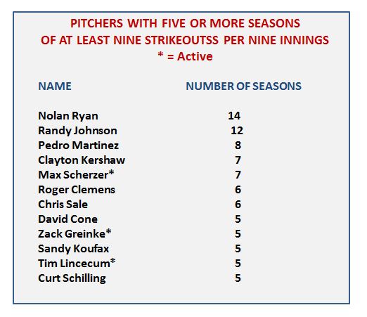Among pitchers with at least 80 inning pitched through June, the Nationals’ Max Scherzer had the highest rate of strikeouts per nine innings at 12.95. The only other hurlers above 12.00 were Chris Sale (12.72) of the Red Sox and Gerrit Cole of the Astros (12.17).