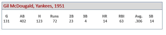 McDougald played 10 MLB seasons, all with the Yankees. In 1,336 games, he collected 1,291 hits (.276), 112 home runs and 576 RBI. He was an All Star in five seasons. He also hit .237, with seven home runs, in 53 World Series games. (Oh, to be a Yankee in those days.)