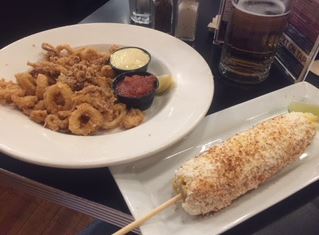 Again for foodies, I selected a “not-very-Kansas” combination of deep-fried calamari with jalapeno tarter sauce and Mexican Street Corn (topped with homemade mayo, cotija cheese, lime juice and chili powder).