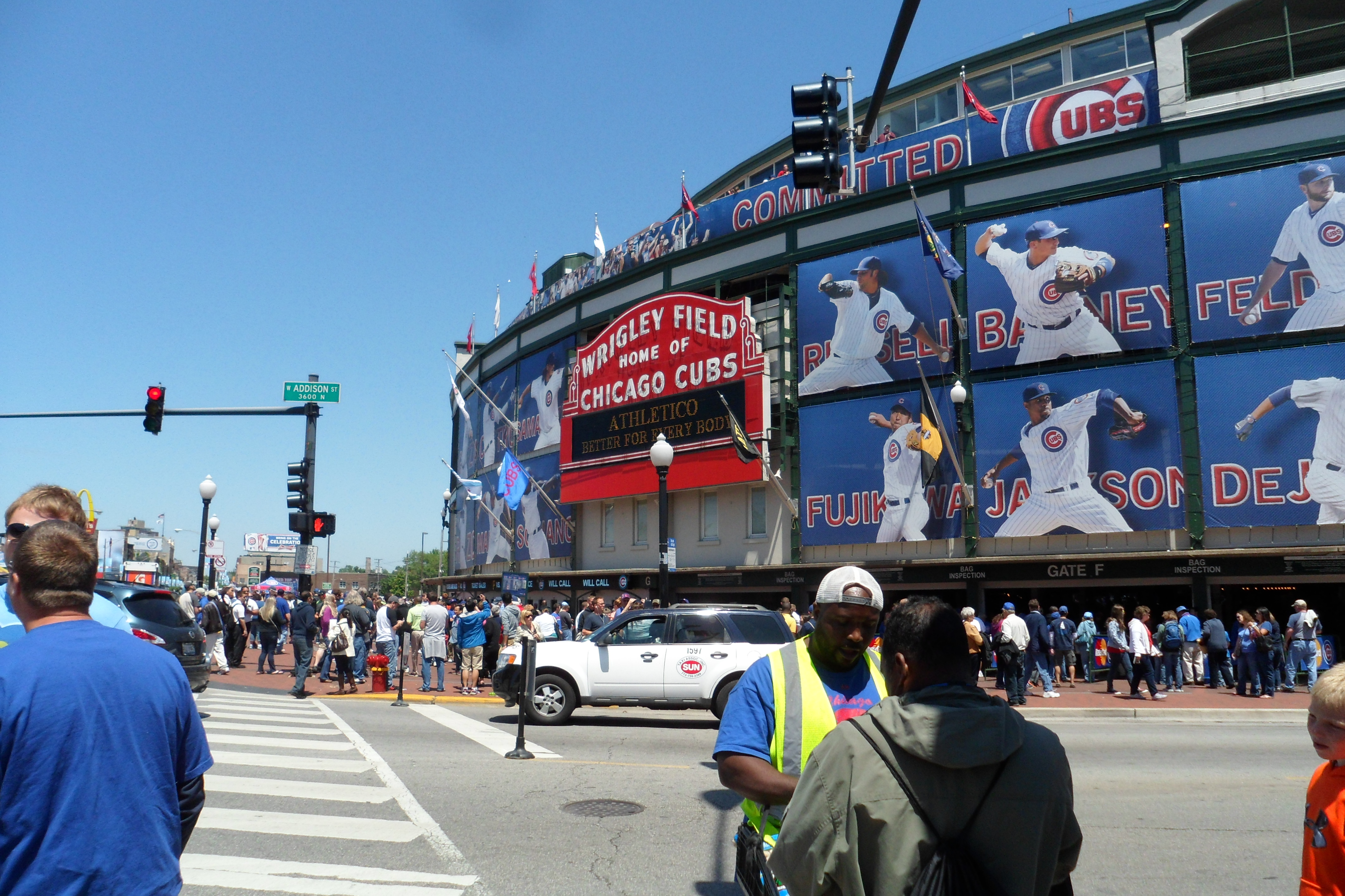 Approximately 45 of us left Saint Paul on the coach bus a little after noon – renewing old friendships and making new ones (all based on a passion for our national pastime). The specially designed tour t-shirts were distributed (photo in a later post), as were the traditional baseball trivia “Kwiz” and entry forms for a contest based on predicting how many runs will be scored across MLB during our travels. Beverages, snacks and lively conversation all flowed freely – and loudly – as we rolled on toward game one on the tour.