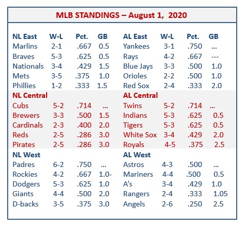 You’ll find full standings and stats near the end of this post, but here are your Round One opponents and seeding. Side note: I see this as fine for this strange season (it did add interest), but I’m not a fan for the future. This year, for example; the Astros and Brewers made “the tournament” with sub-.500 records. I prefer fewer teams and recognition (again next season) of the marathon that is an MLB season.
