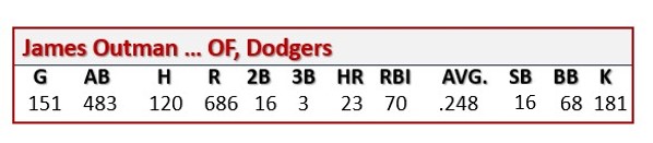 However, I have to go with the Acuna. As the chart below shows, he edged Betts in most traditional offensive statistical categories. Then, there are those 73 stolen bases – which meant a host of singles turned into doubles; opposing pitchers distracted and under pressure; and an increased number of fastballs for those hitting behind him. In my consideration, those factors balanced out the versatility brought to the field and the lineup by Betts. Then of course, there is Acuna’s first-ever MLB 40-70 (HR/SB) season and the fact that down the stretch (September/October), Acuna hit .340-11-23 to Betts’ .244-1-9. (To be fair, Betts had an outstanding August (.455-11-30).