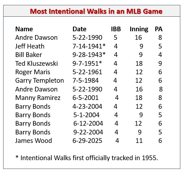 Consider, in 2001, there were 155 double-digit strikeout games by individual pitchers; there were five pitchers with at least eight such games (Randy Johnson – 23; Curt Schilling – 13; Pedro Martinez – 9; Kerry Wood – 8; Matt Morris – 8; and the pitcher with the 10+ Ks pitched at least seven innings in 81.3 percent of those games. By comparison, in 2024, there were 187 pitcher games with ten or more whiffs; no pitcher had more than six such outings (six for Blake Snell, Garret Crochet and Tyler Glasnow); and the pitcher with the 10+ Ks went at least seven innings in just 40.1 percent of the time