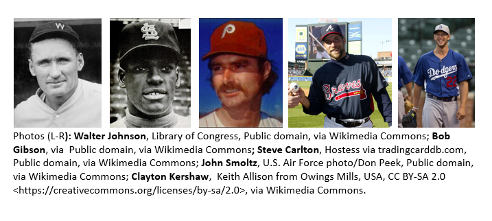 Today, we are looking at some of MLB’s “strikeout artists” – defined, for our purposes, as pitchers who regularly racked up double-digit strikeouts in an outing. As the chart below shows, there have been only eight pitcher seasons of 20 or more games with 10+ strikeouts and – no surprise – four of them belong to Hall of Famer Randy Johnson. The Big Unit also shares the record for the most 10+ strikeouts games in a season at 23 – a feat he accomplished in three consecutive seasons 1999-2001. The only other pitcher to record 23 double-digit K games in a season was (another HOFer) Nolan Ryan in 1973. With today’s methods of “handling” pitchers, the record of 23 double-digit strikeouts games in a season seems pretty safe.